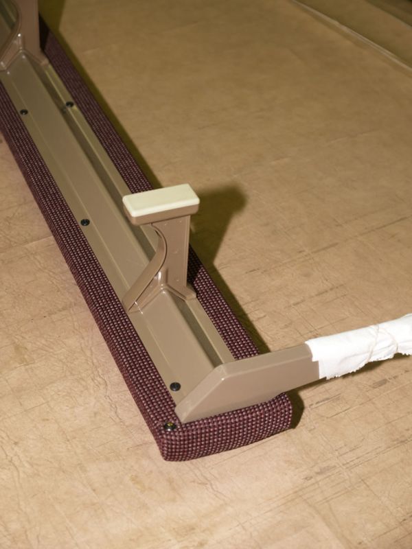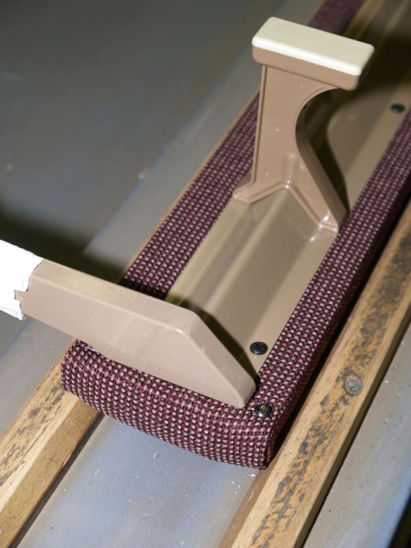 The patented metal framed kneeler design features sturdy, lightweight, metal construction with comfortable upholstered padding. After many years of continuous use in churches, the kneelers are still in service and replacement parts are still available. The new style molded leg with integrated rubber foot pad makes the kneeler lighter in weight and the leg is warrantied for life. The kneeler unit has a 15-year manufacturer's warranty.