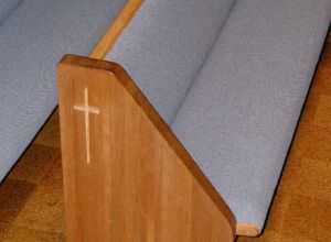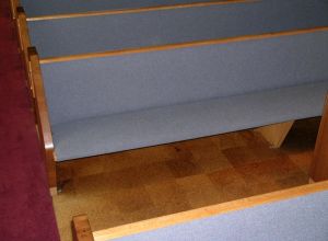 For reupholstering, old fabric and foam will be replaced with new. Pew ends may need to be removed. Seats will need to be removed if the seat fabric is visible from the back side. On some pews even the cap-rail must be removed. If you can see wood buttons on top of the cap, this is a good sign the cap-rail is screwed down over the fabric and will need to be removed before installation. Again, our professional installers will complete the installation on the job site.